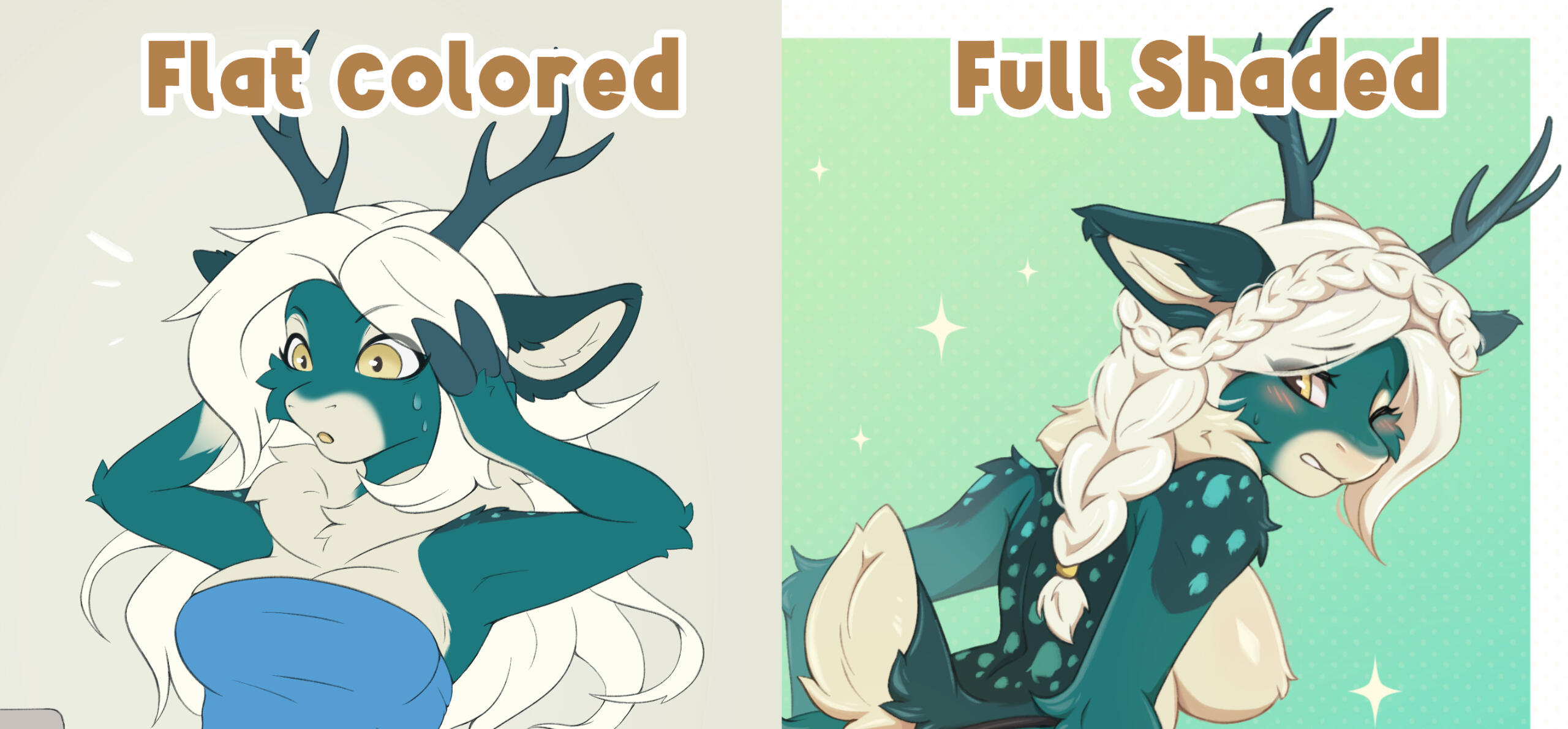 For all illustrations, two coloring options are available: flat color (no shadows or highlights) and fully shaded and detailed.